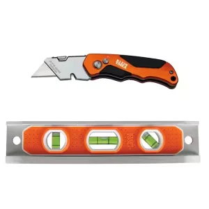 Klein Tools 9 in. Aluminum Torpedo Level and Folding Utility Knife Tool Set 23KIT
